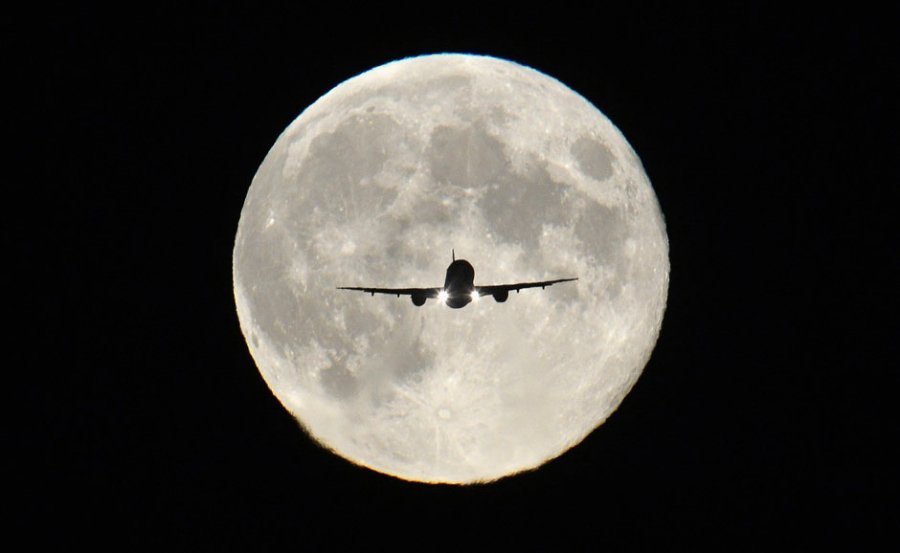 Пасажирський літак на фоні місяця здійснює посадку в аеропорту Хітроу, 19 вересня 2013 TOBY MELVILLE, Англія