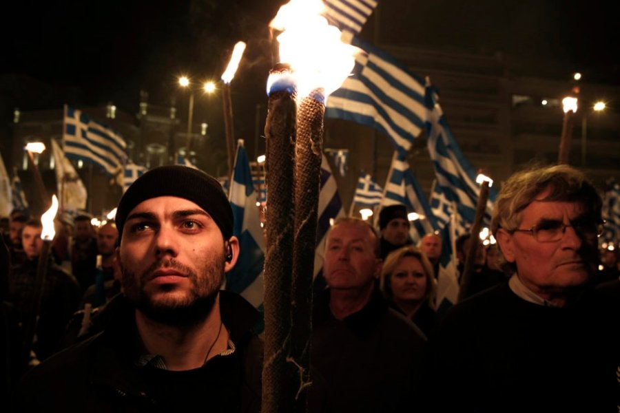 Прихильники ультраправої організації «Золотий світанок» з факелами під час ходи в Афінах, 2 лютого 2013. YORGOS KARAHALIS, Греція