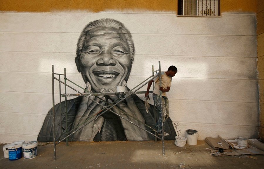 Нельсон Траварес, уродженець Капо Верде, малює графіті Нельсона Мандели під час свята у своєму районі Лісабона, 20 червня 2013. RAFAEL MARCHANTE, Португалія
