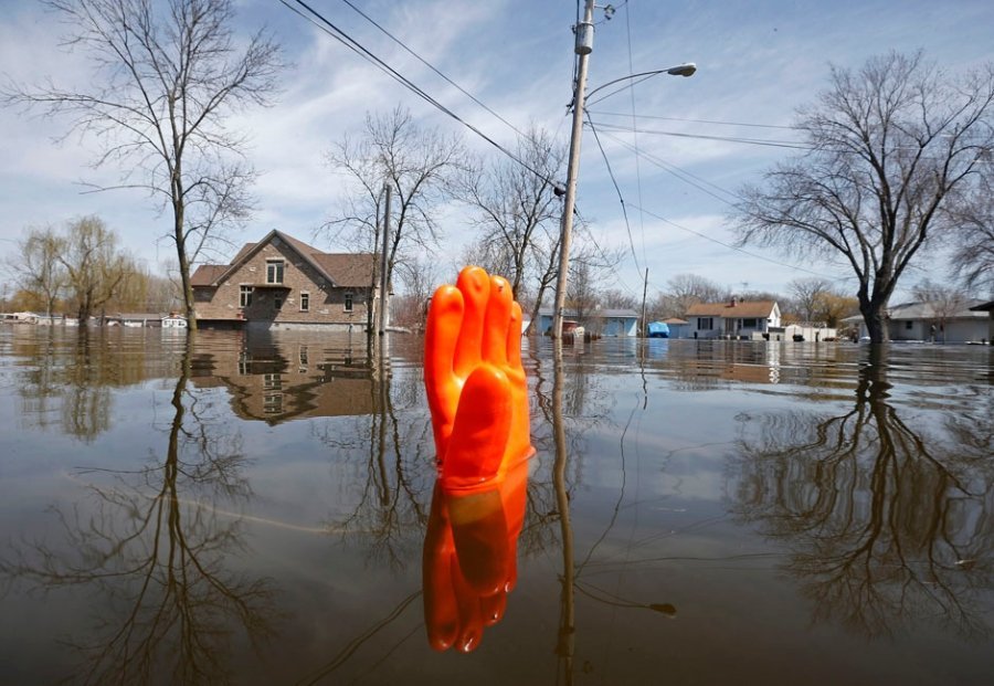 Гумова рукавичка, якою відмітили місце, як маячком, гойдається на воді після повені в Фокс Лейк, штат Іллінойс, 22 квітня 2013. JIM YOUNG, США