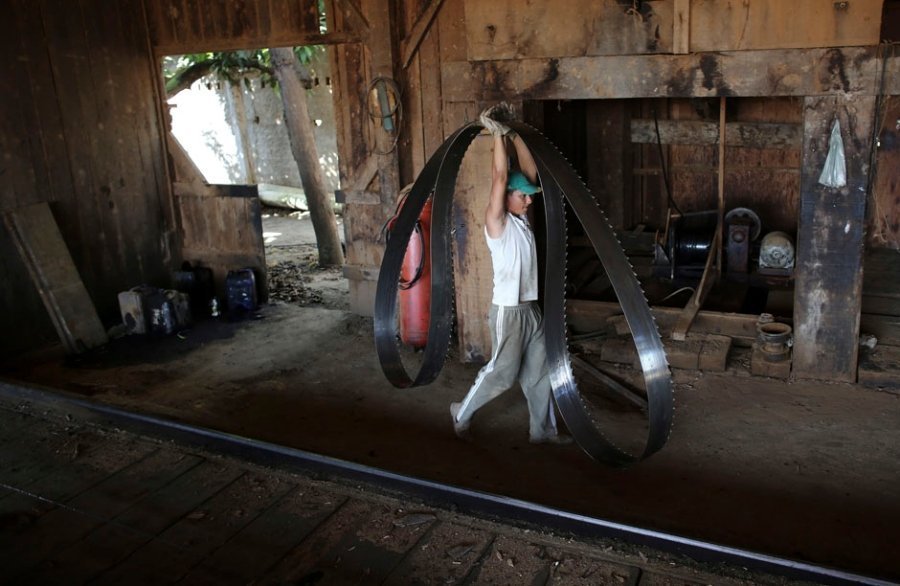 Робітник несе лезо на лісопильню, де обробляють дерева, незаконно зрубані в джунглях Амазонки, штат Пара, 27 червня 2013 року. NACHO DOCE, Бразилія