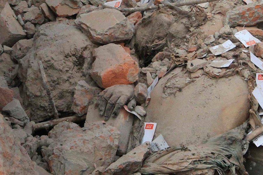 Рука робітника серед руїн новобудови Рана Плаза в 30 км від Даки, 30 квітня 2013. SAJID HOSSAIN, Бангладеш