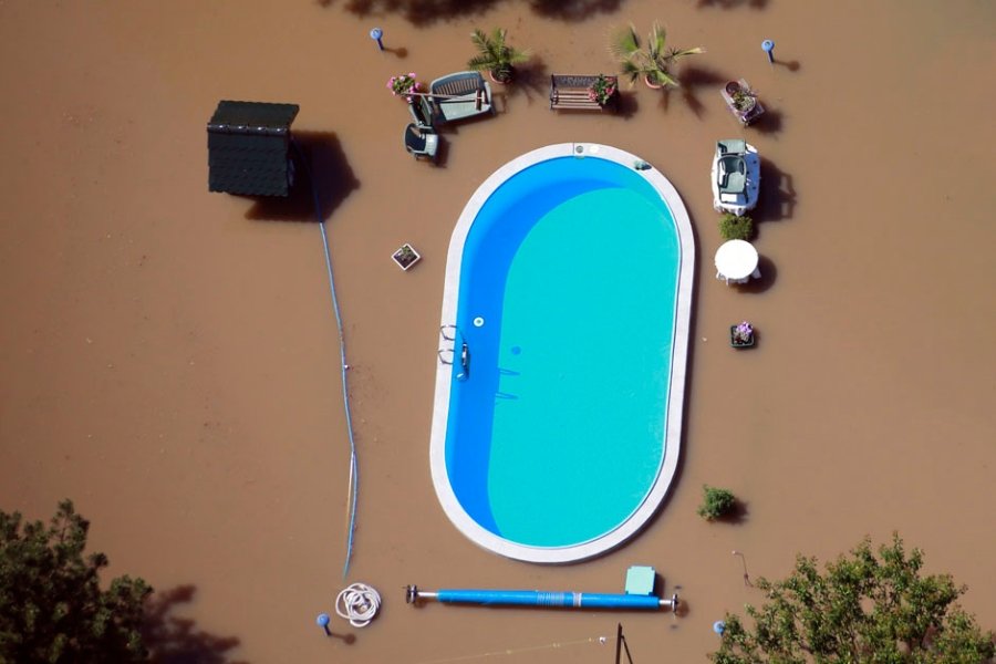 Сад з басейном затоплені водами річки Ельби під час повеней в районі Магдебурга у федеральній землі Саксонія-Ангальт, 10 червня 2013. THOMAS PETER, Німеччина