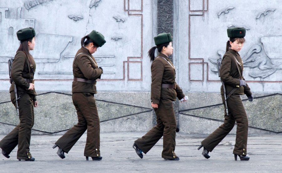 Жінки-солдати патрулюють корейський бік прикордонної річки Ялуцзян, яка розділяє Китай і Північну Корею, 11 квітня 2013. CHEN HAO, Північна Корея