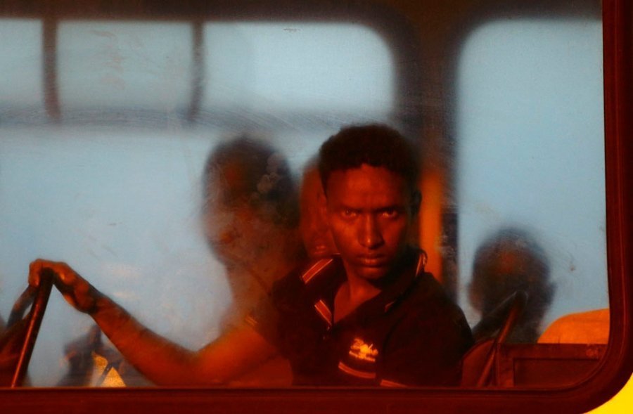 Біженець виглядає з вікна в поліцейському автобусі після прибуття на Мальту, 10 липня 2013. DARRIN ZAMMIT LUPI, Мальта
