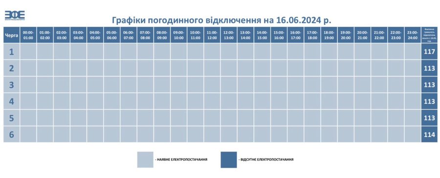 У неділю, 16 червня, графіки погодинного відключення застосовуватись не будуть.