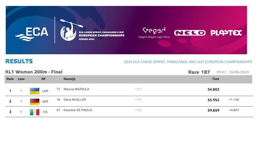 Учора завершився чемпіонат Європи з веслування на байдарках і каное, пара каное та веслування на дошці стоячи 2024 року, який проходив з 13 по 16 червня в угорському місті Сегеді.