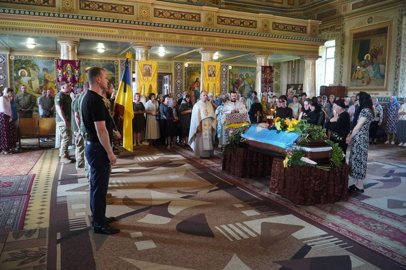 Попрощатись із полеглим захисником до собору Святого Юрія Переможця, де відбувався чин похорону, прийшли його рідні, друзі, побратими, представники міської влади, небайдужі містяни. Зі скорботним словом виступив отець Євген. Співчуття згорьованій родині від імені усієї громади висловив міський голова Ігор Пальонка.
