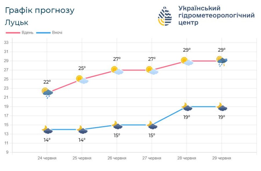 Із четверга, 27 червня, очікується спекотніша погода – денні температури підвищаться до 26-32° тепла.