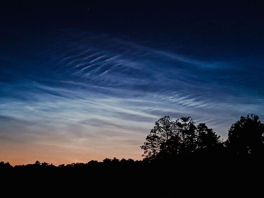 У небі над Волинню виявили рідкісне атмосферне явище — сріблясті хмари, або, як їх ще називають, хмари, що світяться. Вони видно в глибоких сутінках, безпосередньо після заходу сонця або перед сходом Сонця.
