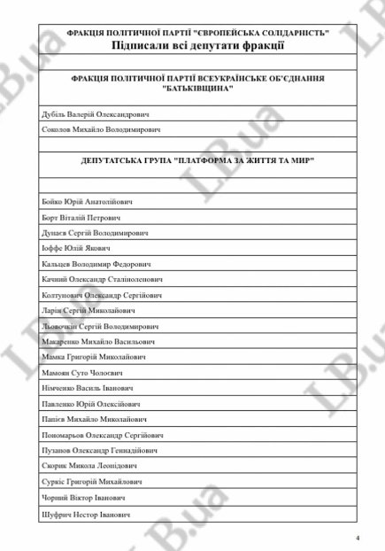 Представники усіх фракцій були долучені до збору підписів, і цей документ є фінальним. Про це повідомили джерела LB.ua у парламенті.