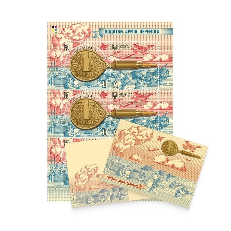 "Ці марки відображають внесок кожного українця у нашу спільну Перемогу, оскільки податки стають фундаментом національної безпеки та оборони", — сказала Валентина Варголяк.