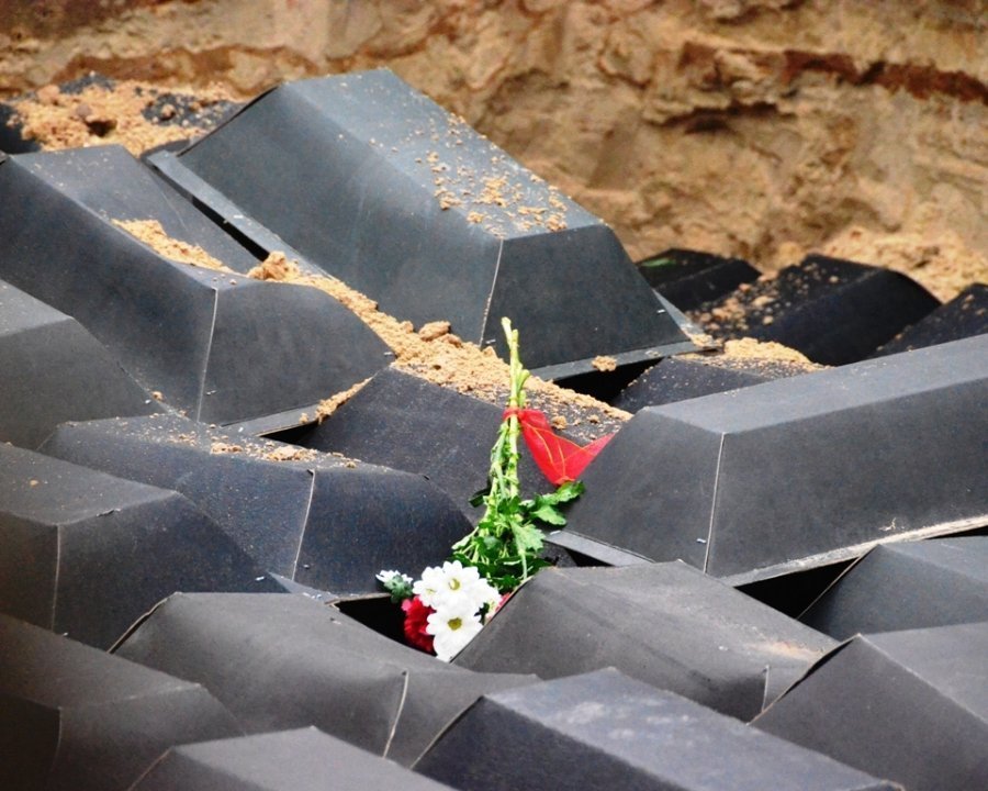 «Там, у валах городища, було здійснено жахливий злочин проти людськості. І наш обов’язок — похоронити цих мучеників по-християнськи і в ім’я пам’яті про минуле щиро помолитися за вічний спокій душ невинно убієнних», – зазначив міський голова Петро Саганюк, відкриваючи скорботний мітинг.