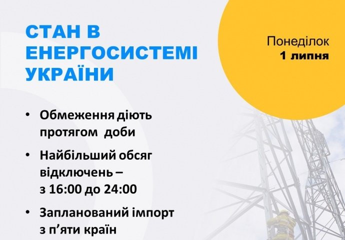 "Причина збільшення обмежень – зростання споживання у зв’язку зі спекою. Стовпчик термометра сягає в денні години вище 30С. Сьогодні, за прогнозами, споживання очікується майже на 5% вищим, ніж вчора – у вихідний день", - розповіли у пресслужбі.