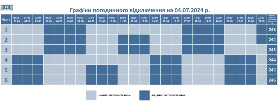 ГРАФІК ВІДКЛЮЧЕННЯ СВІТЛА У ЛУЦЬКУ ТА НА ВОЛИНІ НА 4 липня.