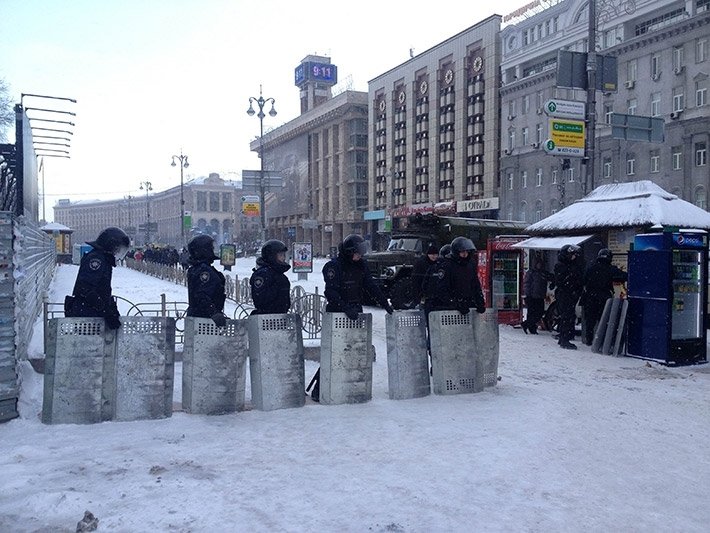 Міліція та внутрішні війська заблокували Євромайдан, перекривши підходи до Майдану Незалженості.