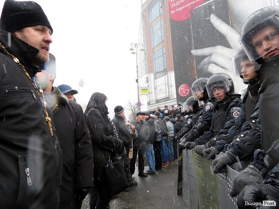 Приїхала - кордон міліції, напруга в повітрі. Жінки стоять перед правоохоронцями і молять: не бийте наших дітей, не бийте нас. Плачу. Священики службу служать. Небо нависло над головою - збирається на сніг.
