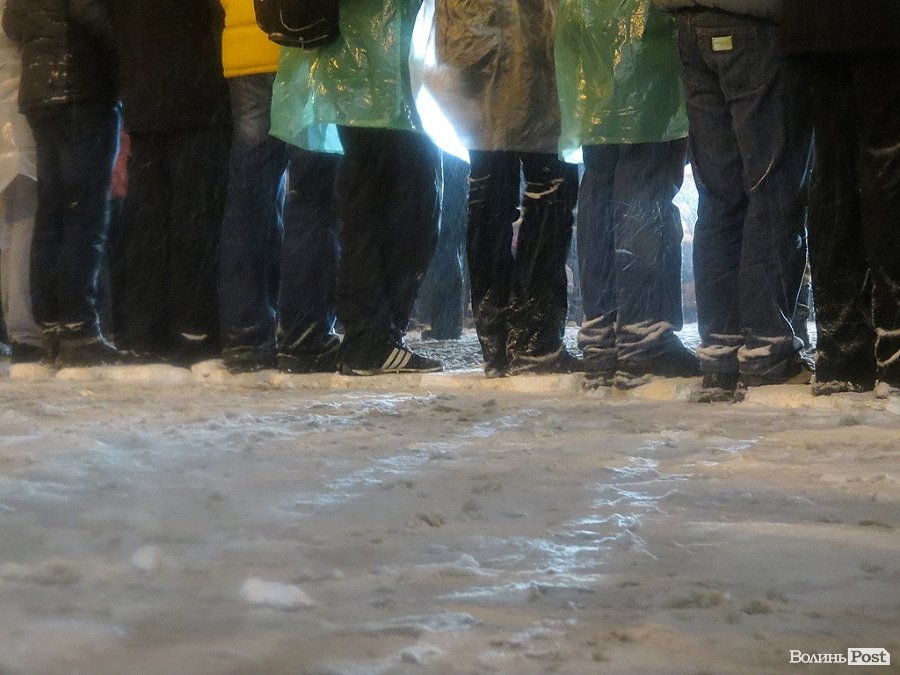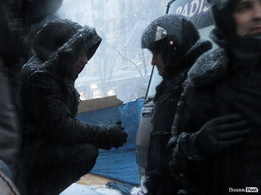 Йшла година, друга, з неба почав падати мокрий сніг. А кордон, до слова, поставили в калюжі. Відразу ж знайшлося багато пінопласту, який почали підкладати собі під ноги. І правоохоронцям також. Взагалі, дивна штука цей майдан: не встигнеш сказати, що тобі щось потрібно, як одразу з'являється це "щось" в неймовірній кількості.