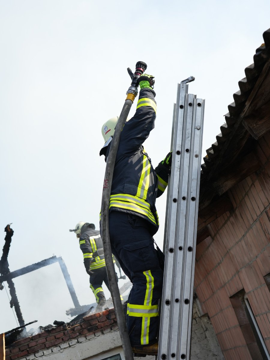 З'ясувалося, що вогонь охопив частину покрівлі цегляної господарської споруди, худоби у приміщенні не було.
