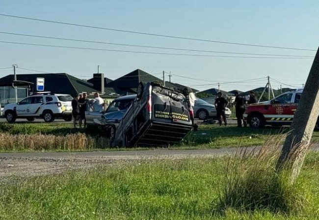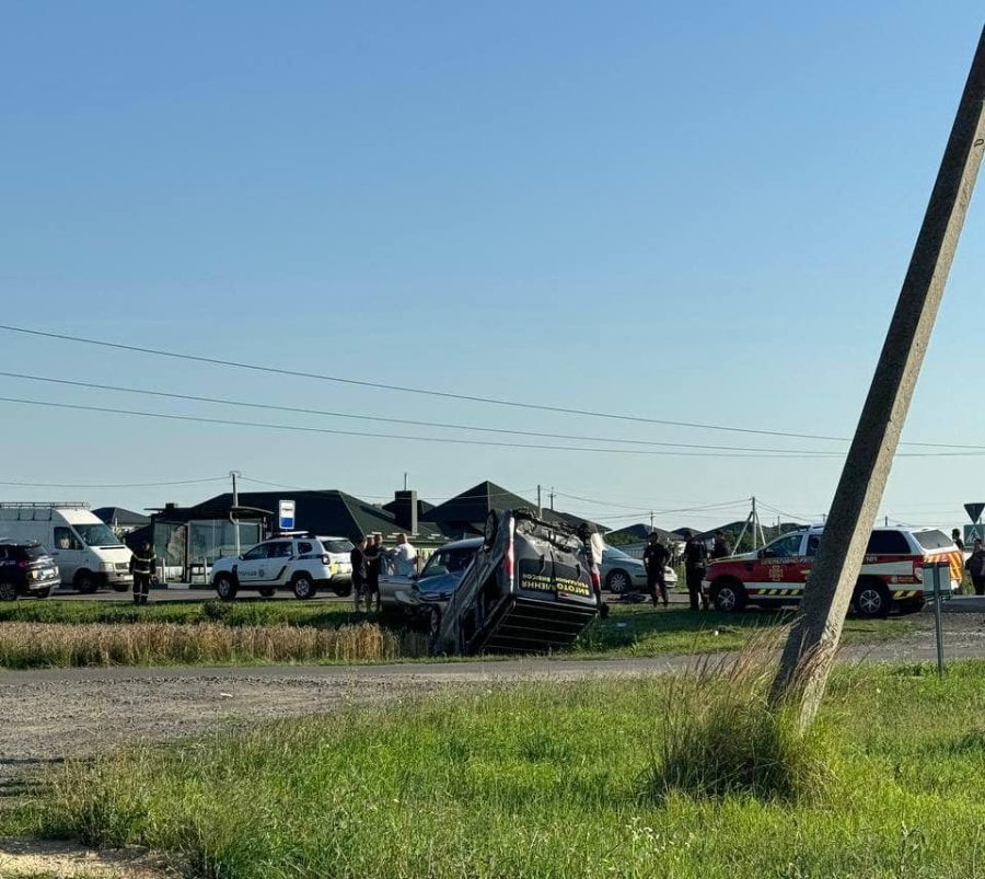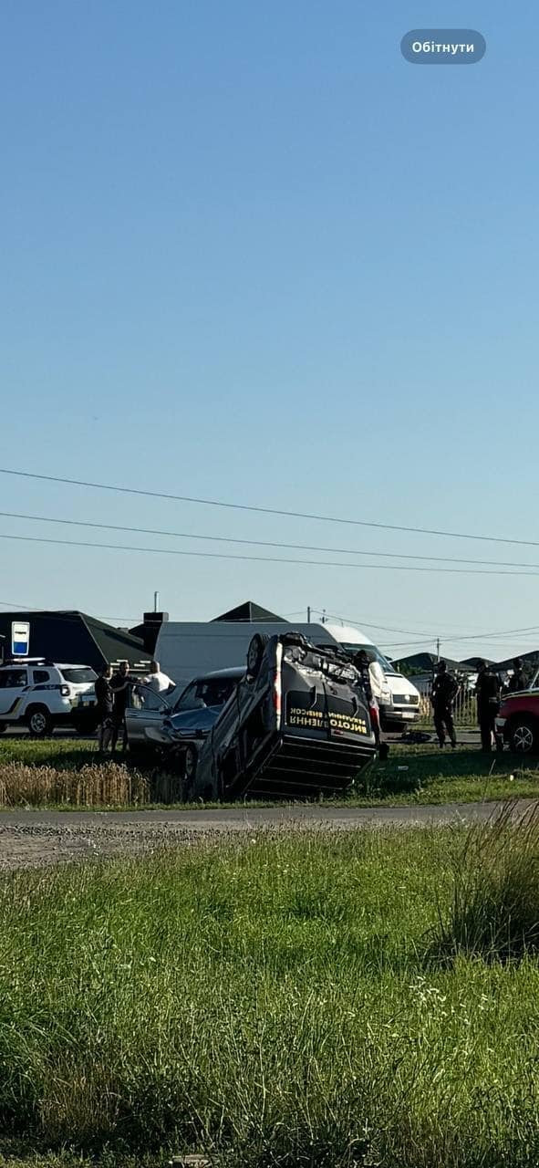 Як розповіли очевидці, зіткнулися легковий автомобіль та бус. Транспортні засоби отримали значні механічні пошкодження. Бус від удару злетів у кювет.