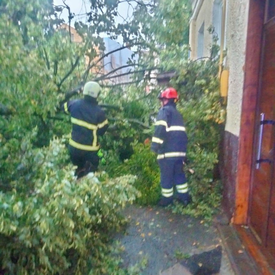 Зазначають, що на місці працювала чергова варта Аварійно-рятувальної частини. Працівники ДСНС розпиляли дерево, що впало на дорогу й припаркований легковик й перегородило рух транспорту і пішоходам.