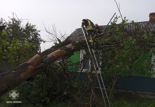Сьогодні, 17 липня, о 11:35 до Служби порятунку 101 надійшло повідомлення про те, що в селі Конюхи Локачинської громади внаслідок погодних умов дерево впало на дах житлового будинку.