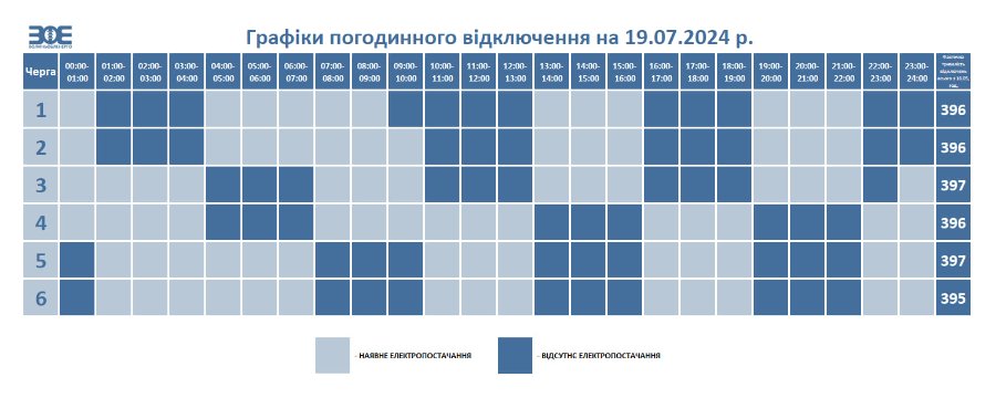 У разі відміни НЕК «Укренерго» обмежень у певні години протягом дня, загальний час коригується з урахуванням фактичного часу відключення черг та відображається у графіку на наступний день.