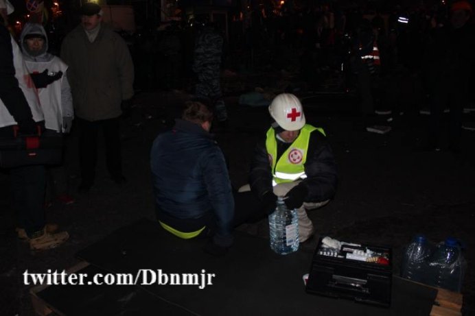 Зі слів присутніх людей на Євромайдані, було багато потерпілих. Нардепу-свободівцю Андрієві Іллєнку розбили голову.