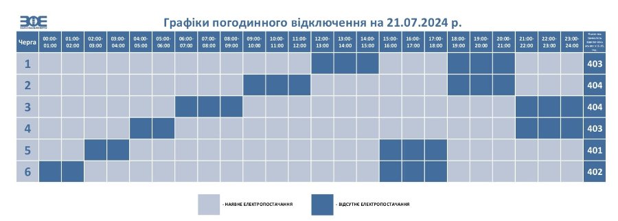 ГРАФІК ВІДКЛЮЧЕННЯ СВІТЛА У ЛУЦЬКУ ТА НА ВОЛИНІ НА 21 ЛИПНЯ.