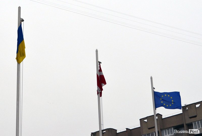 За дивним збігом обставин на вітрі майорить лише прапор Євросоюзу. Інші заплуталися.