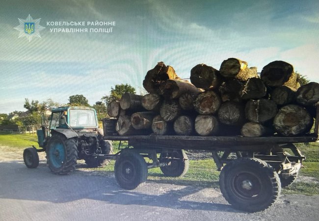 Під час здійснення профілактичних заходів наряд відділу реагування патрульної поліції Ковельського районного управління поліції зупинив водія, що керував трактором МТЗ з причепом та перевозив деревину породи осика. Водій транспортного засобу будь-яких дозвільних документів на вантаж не надав, окрім того, були відсутні й електронні чіпи для обліку деревини.