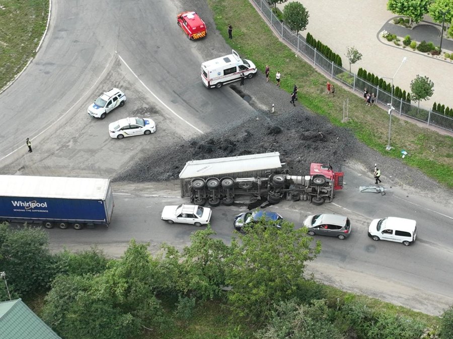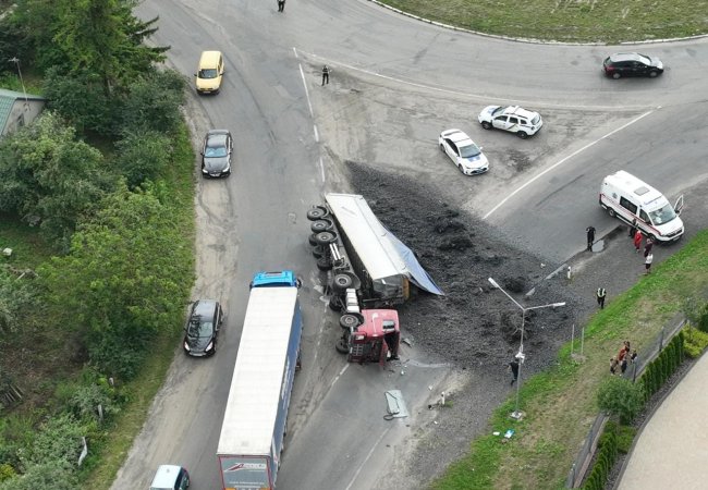 Поблизу Луцька перевернулась вантажівка і частково перекрила рух транспорту