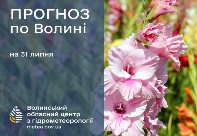 Волинський обласний центр з гідрометеорології опублікував прогноз погоди на 31 липня.
