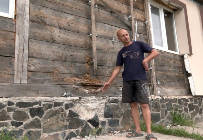 "Несучі стіни порушені, будинок хитається повністю, — говорить Сергій Панасюк. — Викликав фахівців із реконструкції і вони сказали знімати штукатурку, фундамент підсилювати, на стіну ще одну балку класти і нарахували робіт на 1.2 мільйона гривень".