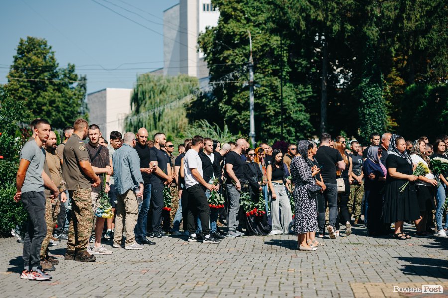 На цереморнію прощання прийшли рідні, близькі, друзі, побратими загиблого воїна та сотні лучан.