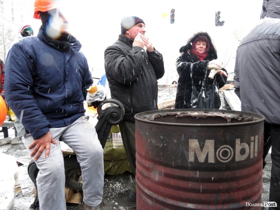 Майдан став згуртованішим, міцнішим, наповнюванішим, багатшим (протягом усього дня снували туди-сюди люди з коробками харчів і товарів) і теплішим. Усі всіх чекають біля своїх бочок. Усі всім хочуть розказати свої казки.