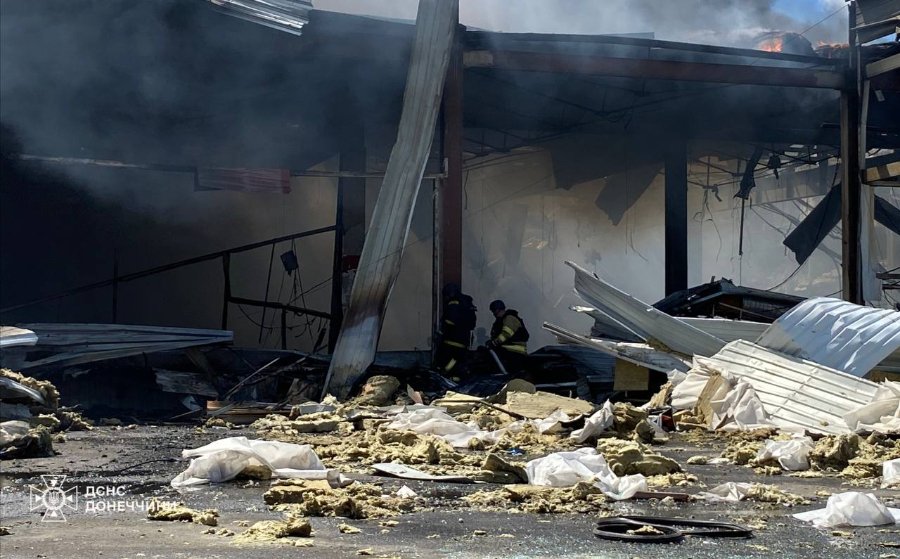 Унаслідок удару по Костянтинівці на Донеччині відомо уже про 48 постраждалих. Рятувальники ліквідували пожежу торговельного центру площею 1 тис. кв. м.