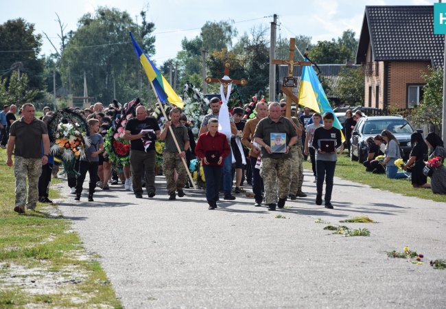 «Сьогодні багатолюддям провели в останню дорогу молодого, мужнього воїна із села Гірки Василя Канюку. Коровай розділили не на весіллі. Гірким він був від сліз та горя...» - йдеться у повідомленні.