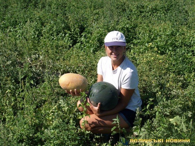 «Ми їх посадили цьогоріч на пробу на двох гектарах, – провадить співвласниця агрогосподарства. – Дині добре виросли, і смакові якості у них відмінні. Проте у нас в області для цієї культури забагато вологи, і вона дуже швидко псується. Вчора вибрали, а сьогодні вже з дефектами. Дині більше підходить сухіший клімат. Кавуни виявилися невибагливими, їм на Волині вистачило сонця і вологи. Цьогоріч плануємо їх реалізовувати насамперед по області».
