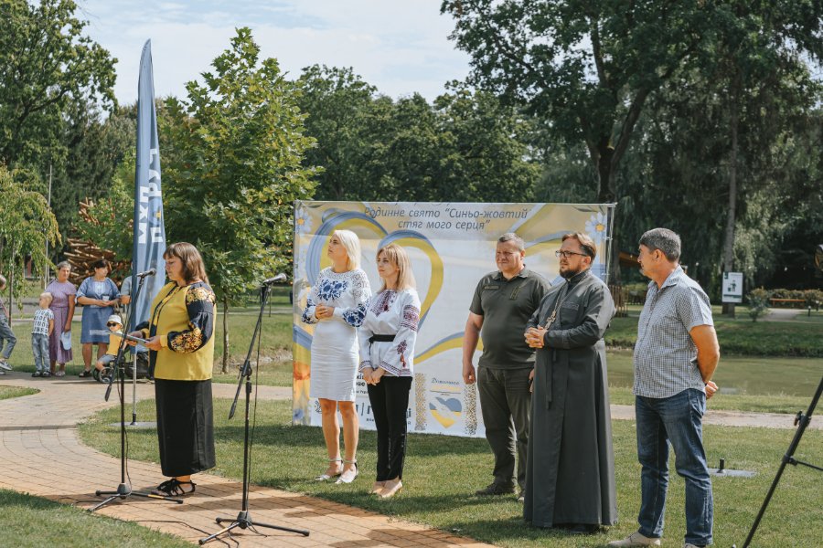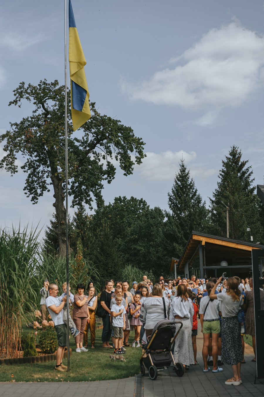 Урочистість розпочалось із підняття найбільшого прапора України у громаді, яке доручили військовослужбовцю та працівнику «МХП-Баффало» Івану Назарчуку та 4-річному Миколці Козіку, сину загиблого воїна Богдана Козіка.
