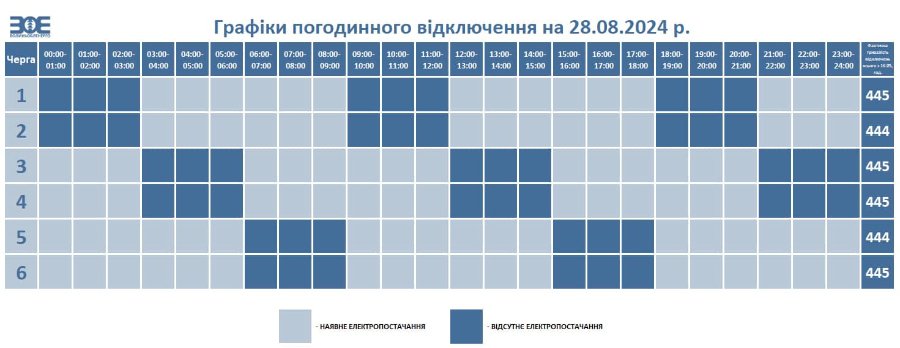 У разі відміни НЕК «Укренерго» обмежень у певні години протягом дня, загальний час коригується з урахуванням фактичного часу відключення черг та відображається у графіку на наступний день.