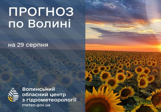 Волинський обласний центр з гідрометеорології опублікував прогноз погоди на 29 серпня.