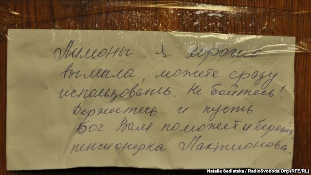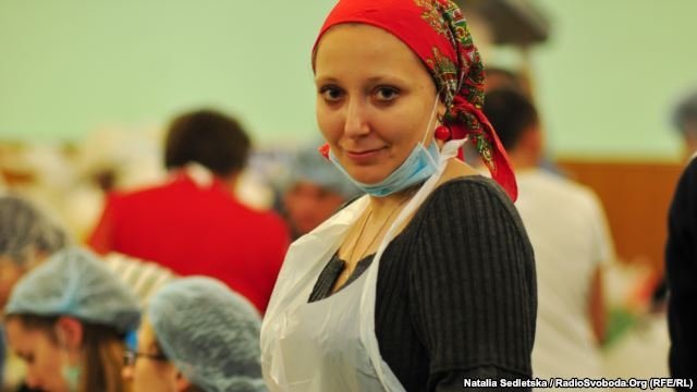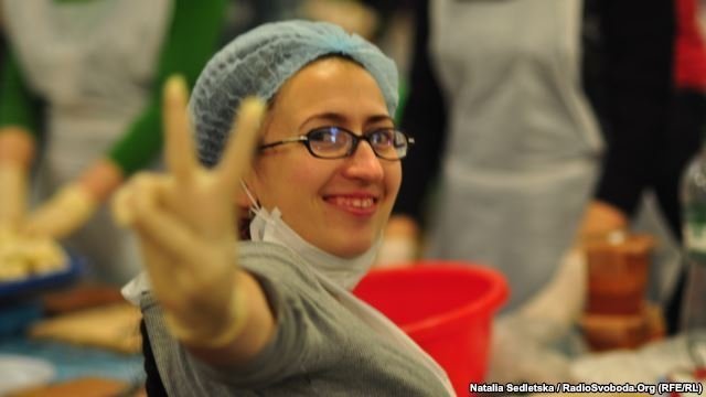 Любов Степанівна чверть століття працювала в санепідемстанції на «Укрзалізниці». Тепер вона на пенсії. На кухні Євромайдану жінка щодня – перевіряє усі продукти на термін придатності та якість. Відповідає за чистоту та дотримання санітарних норм. Звісно добровільно.