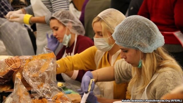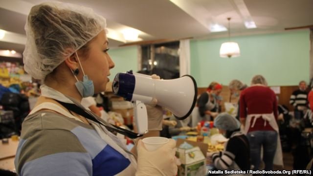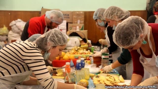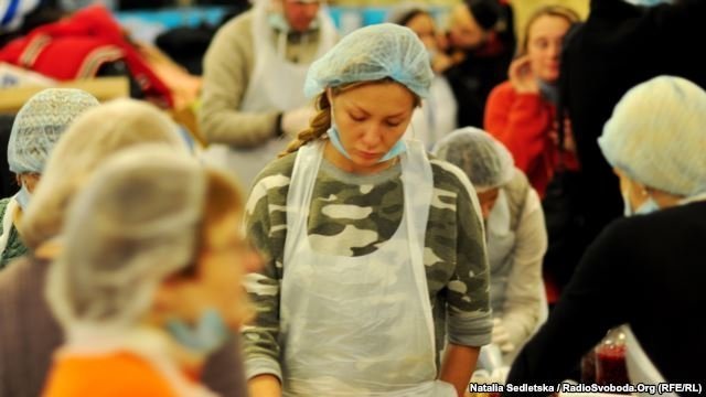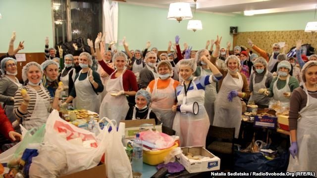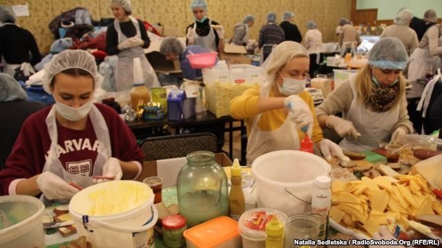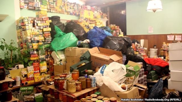 Сюди зносять продукти, які привозять люди, тут їх сортують і готують з них їжу для мітингувальників, – пише Радіо Свобода.