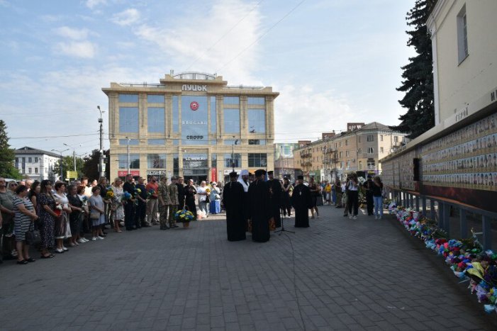 Пам’ять усіх захисників України присутні вшанували хвилиною мовчання. За упокій душ спочилих воїнів священники відслужили панахиду. Ліцеїсти Волинського обласного ліцею з посиленою військовою підготовкою імені Героїв Небесної Сотні поклали кошик квітів до пам’ятного фотостенду. Дружини, діти, матері воїнів, керівники органів влади також поклали букети до фотостенду загиблих Героїв.