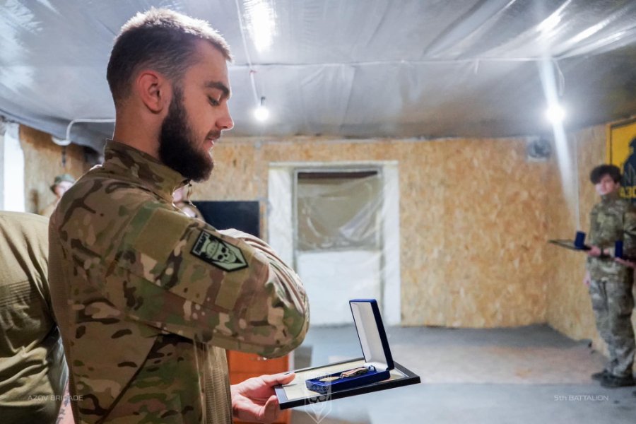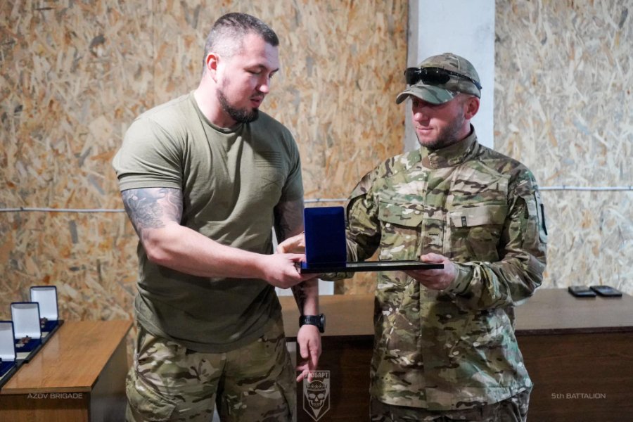 Зокрема, бійці 5-го батальйону «Любарт» 12-ї бригади «Азов» були відзначені нагородами від Президента України.