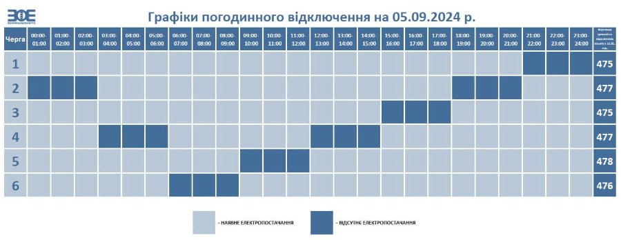Загальну тривалість відключень кожної черги можна побачити в останній колонці інтерактивного графіку. Початок застосувань ГПВ –16.05.2024.