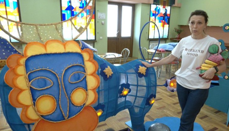"У нас є ось такі пташечки, які ми одягаємо діткам на ручки, і дітки розвивають свою моторику, адже їм потрібно постійно працювати, щоб та пташечка оживала, щоб вона літала. Дітки пропрацьовують свою моторику, взаємодію один з одним, з батьками, з нами, чужими людьми", — каже акторка.