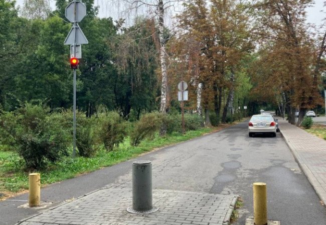 Щоб болард водії більше не ламали, тут встановили світлофор.