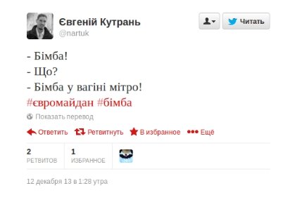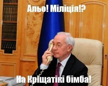 В інтернеті від часу першого повідомлення про замінування метро в центрі Києва з'явилося чимало фотожаб, автори яких жартують: метро "мінує" прем'єр-міністр Микола Азаров.